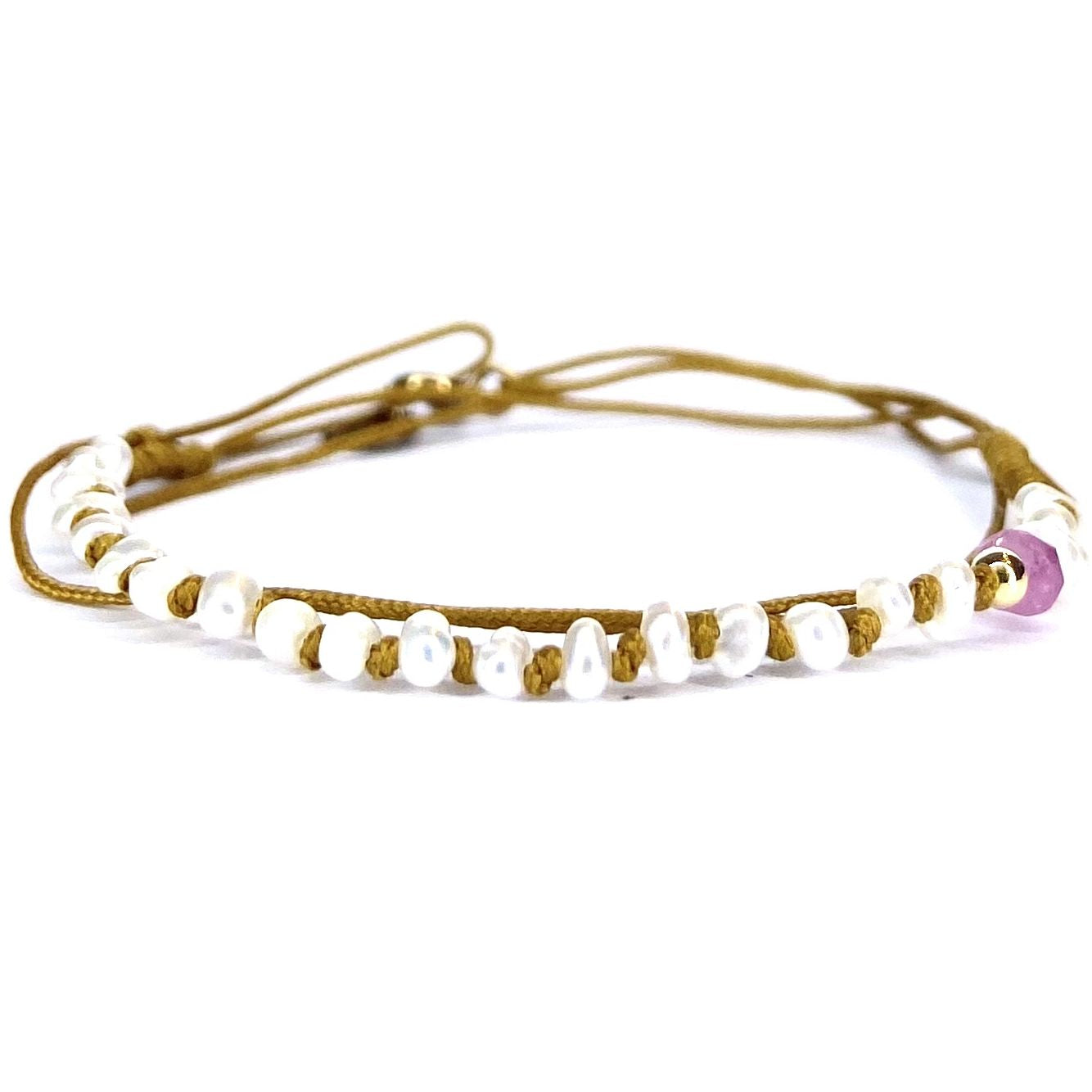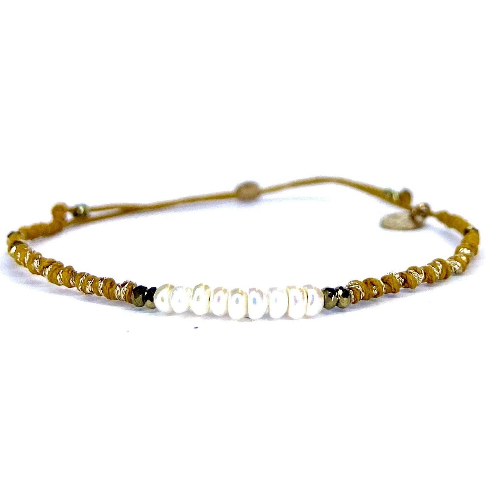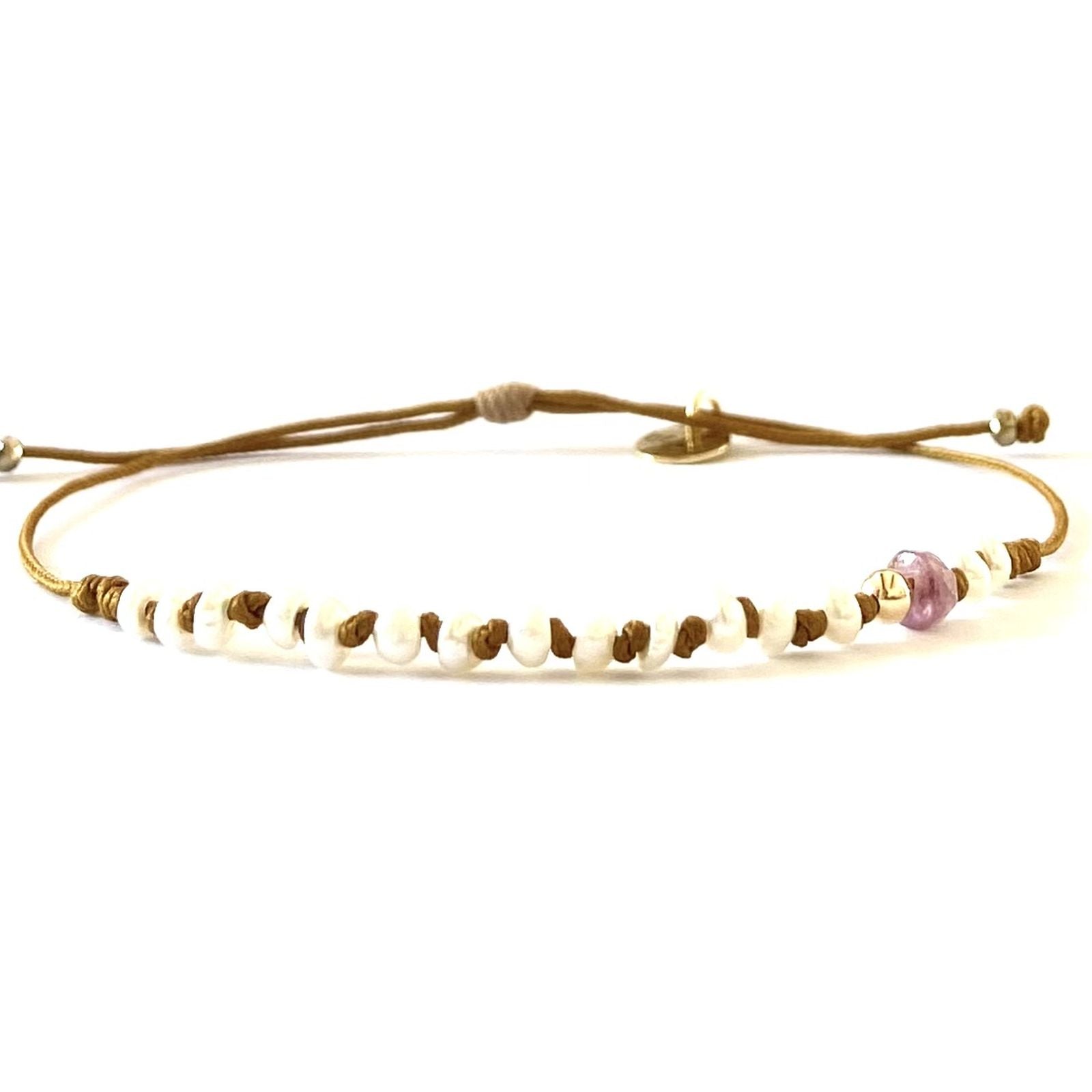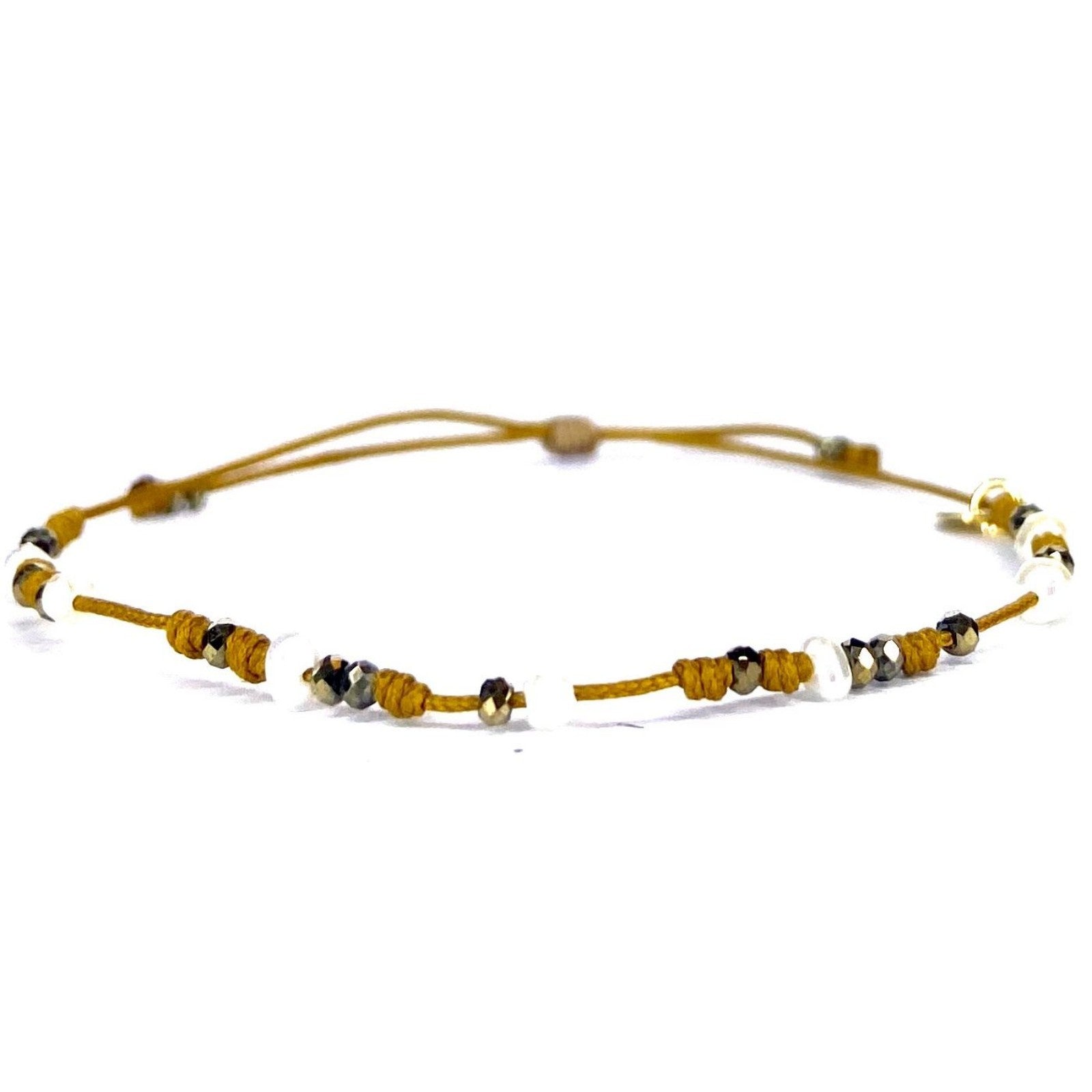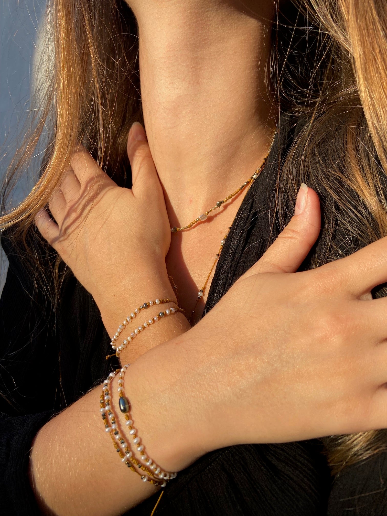 L'élégance des perles rencontre la modernité dans la collection "Éclat de Perle". Les bracelets et ras-de-cou associent perles d'eau douce, perles Keshi de Tahiti et éléments dorés, comme des pendentifs étoile ou cœur. Les modèles, montés sur des liens coulissants multicolores ou mordorés, intègrent également des rubis, pyrites et labradorites, offrant un style raffiné et lumineux, parfait pour sublimer vos tenues estivales.